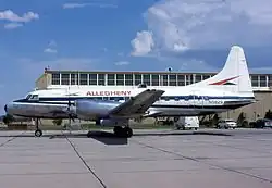 - Am 20. August 1971 wurde mit einer Convair CV-580 der Allegheny Airlines (N5844) bei der Landung auf dem Flughafen Pittsburgh International (Pennsylvania, USA) wegen eines Problems mit dem Fahrwerk durchgestartet. Dabei lösten sich die Räder des rechten Hauptfahrwerks. Bei der Landung brach dieses zusammen und das Flugzeug wurde irreparabel beschädigt. Alle 53 Insassen, drei Besatzungsmitglieder und 50 Passagiere, überlebten den Unfall.[36]