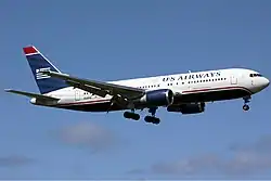 US Airways entstand aus einer Regionalfluggesellschaft, die vorwiegend den Nordosten der USA bediente, und begann 1987 noch als USAir nach Zukäufen von anderen Fluggesellschaften mit dem internationalen Flugverkehr. Im Jahr 2005 wurde US Airways von America West aufgekauft, wobei der Name US Airways beibehalten wurde. Die Fluggesellschaft galt bis 2013 in den USA neben American Airlines, Delta Air Lines und United Airlines als eine der vier verbliebenen großen Linienfluggesellschaften mit umfangreichem Streckennetz, den Legacy carriers.[3] Am 9. Dezember 2013 fusionierte US Airways mit American Airlines zur größten Fluggesellschaft der Welt.[4]