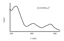 Auch anorganische Verbindungen zeigen oft starke Farben, d. h. sie absorbieren im UV/VIS-Bereich. Bei kleinen anorganischen Molekülen wird, ähnlich wie bei organischen Molekülen, die MO-Theorie zur Erklärung herangezogen.[11][15]