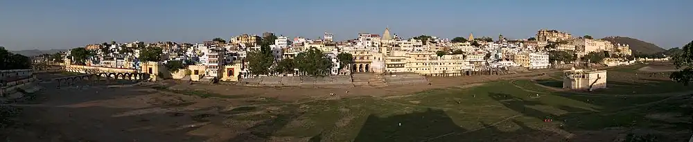 - Der Jagdish-Tempel, ein Vishnu geweihter Hindu-Tempel aus dem Jahr 1651, ist das größte religiöse Bauwerk der Stadt. Im Vergleich zu den mittelalterlichen Tempeln Indiens ist sein Figurenschmuck jedoch eher einfach.