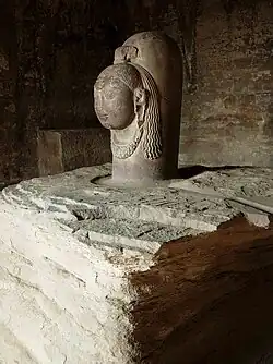 - Das Portal dieser Höhle ist mehrfach abgestuft und außergewöhnlich reich mit pflanzlichen Motiven ornamentiert; es endet in einem breiten T-förmigen Sturz. Links und rechts des Eingangs befinden sich zwei arg zerstörte Wächterfiguren (dvarapalas oder pratiharas); weiter außen stehen zwei Säulen, deren Schaft sich von einem quadratischen hin zu einem achteckigen und dann sechzehneckigen Querschnitt fortentwickelt. Von einer skulptierten Gruppe der sieben Matrikas ist nicht mehr viel erhalten. Im Innern erhebt sich ein knapp meterhoher – aus dem natürlichen Felsgestein herausgehauener – feinpolierter Lingam mit einem Gesicht des Gottes Shiva, das jedoch in späterer Zeit mehrere Beschädigungen erlitt. Die rückwärtige Seite des Lingam zeigt feine Linien, die die Form einer Eichel nachahmen; der Lingam steht in einer Yoni-artigen Vertiefung mit einer seitlichen Abflussrinne für Opferflüssigkeiten aller Art (Milch, Wasser etc.).