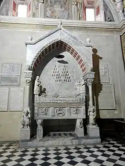 - ↑ Bergamo, Biblioteca civica, Archivio del Consorzio della Misericordia maggiore di Bergamo (MIA), mss. 845. A. Gotthold Meyer: Lombardische Denkmäler des vierzehnten Jahrhunderts. Giovanni di Balduccio da Pisa und die Campionese. Ein Beitrag zur Geschichte der oberitalienischen Plastik. Stuttgart 1893, S. 53.