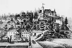 Johann Phillipp Eisenlohr ließ es 1810 als Eisenlohrs Bierkeller errichten.[1] Weite Teile des veralteten Brauereigebäudes wurden abgerissen, nachdem der Bierbrauer Louis Krauß das Anwesen 1891 kaufte und als Kraußsche Bierkeller betrieb. Die Uhlandhöhe bestand 1906 noch aus einem zweistöckigen Gebäude, mit dem bis heute vorhandenen Turm an dessen nordöstlicher Seite. Im Jahr 1921 wurde die Schankwirtschaft und der Bierhandel eingestellt.[2]