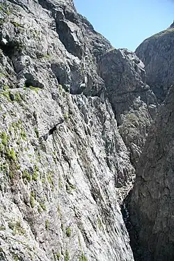 ![]() Die Uina mit unterspülter Strasse im Val d’Uina | ||