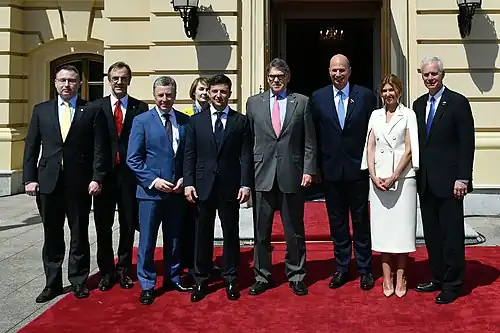 Der amerikanische Sondergesandte für die Beziehungen zur Ukraine Kurt Volker, der sich öfters mit ukrainischen Regierungsvertretern getroffen hat, trat am 28. September 2019 zurück.[38]