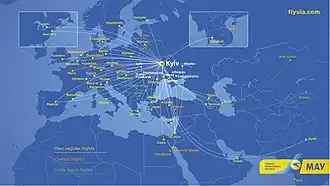Ukraine International Airlines (UIA) bediente neben mehreren Zielen innerhalb der Ukraine (9 Inlandstrecken ab Kiew-Boryspil) auch zahlreiche Städte- und einige saisonale Urlaubsziele in Europa, Osteuropa, dem Kaukasus, dem Baltikum sowie dem Mittleren Osten.