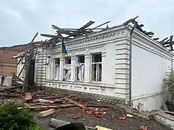 In der seit dem 24. Februar belagerten Stadt Tschernihiw wurde am 11. März das Vasil-Tarnovski-Haus des Museums für ukrainische Altertümer fast vollständig zerstört.[37] Die regionale Jugendbibliothek von Tschernihiw im Stil des Neugotik wurde ebenfalls stark beschädigt. Am 6. März wurde das Regionale Kunstmuseum von Tschernihiw beschossen, am selben Tag wurde auch das Literaturmuseum von Tschernihiw beschädigt. Auch das Kino Shchors, das Hotel Ukraina und eine Museumsabteilung, die dem Militär gewidmet ist, wurden beschädigt, obwohl ihr Inhalt zuvor in einem Tresor versiegelt worden war.[38] Die Korolenko Chernihiv Regional Universal Scientific Library wurde am 30. März bombardiert, wobei auch die Bibliothek beschädigt wurde.[39]