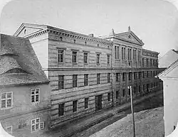 Das Postgebäude wurde 1854, als eines der ersten an der neu angelegten Straße, gebaut. Im Laufe der Zeit wurde das Gebäude mehrmals vergrößert und erweitert (1891 und 1931), behielt aber die neoklassizistische Fassade bis heute.