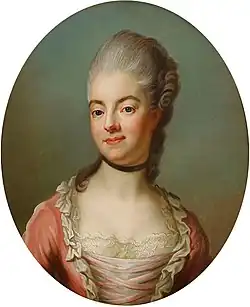 „Sie heiratete in jungen Jahren und stürzte sich sofort in eine Vielzahl von Abenteuern, da ihr eine behütete Erziehung fehlte. Alle Herren amüsierten sich über ihre heitere und geistreiche Unterhaltung; aber ihr Mann, der eifersüchtig und brutal war, stritt sich mit ihr, sobald sie mit jemandem sprach, und begnügte sich schließlich nicht mit harten Worten, sondern begann sie zu schlagen. Er selbst hielt sich in Gasthäusern auf, betrank sich und spielte hohe Spiele, wobei er meistens verlor, und der beklagenswerte Zustand, in dem er seine Frau zurückließ, hat sicherlich zu ihrer jetzigen Lebensweise beigetragen, denn seit sie so lebt, als sei sie von ihrem Mann geschieden, hat sie sich wirklich von ihm gelöst. Man muss nachsichtig mit ihren Fehlern sein, die ihr selbst am meisten schaden; was aber noch schwerer zu verzeihen ist, sind die vielen Schwierigkeiten, die sie ständig macht. Da es ihr gelungen ist, die Gunst des Königs zu erlangen, kann sie es nicht ertragen, dass er einer anderen Aufmerksamkeit schenkt, und sie würde gerne hingehen und so tun, als sei sie die bevorzugte Sultanin, wenn auch nicht immer mit viel Erfolg. Ihr Wesen ist eine seltsame Mischung aus Witz und Leichtsinn, und sie ist nicht ohne ein wenig Bosheit. Ich möchte nicht ihr vertrauter Freund sein, denn sie ist nicht sehr loyal und würde zweifellos die heiligste Freundschaft aufs Spiel setzen, nur um einen Scherz zu machen; ich möchte auch nicht mit ihr im Streit liegen, denn sie behandelt ihre Feinde gnadenlos und zögert nicht, alle möglichen Verleumdungen auszusprechen. Ihre eher seelischen Gaben sind wenig kultiviert, und das Lesen macht ihr nicht viel Spaß, und sie hat überhaupt keine Ahnung von der Sache selbst; sie kennt nicht einmal den Namen davon. Sie ist sehr angenehm und sieht in der Tat sehr gut aus, und, wenigstens als sie noch ihre ganze Frische hatte, glich sie vollkommen einer Hebe, weshalb der König auch den hervorragenden Bildhauer Sergel veranlasste, ihren Kopf und ihre Gesichtszüge auf ein Venusbild zu setzen.“