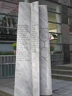 - 1975 Thomas-Mann-Gedenkstein (Cristallino Marmor auf Basalt), WV 141, Standort: Breite Straße in Lübeck[12]