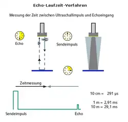 - Laufzeitmessung ausgesandter Ultraschall-Impulse: