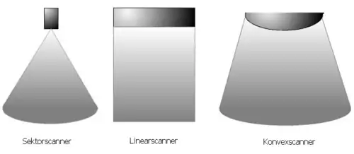 Nach ihrem Aufbau unterscheidet man verschiedene Sondentypen: Sektor-, Konvex- und Linearsonden. Entsprechend ihren unterschiedlichen Eigenschaften (zum Beispiel der Ankopplungsfläche) unterscheiden sich ihre Anwendungsbereiche.