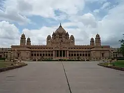 Als in der Mitte der 1920er Jahre eine Dürre die Region um Jodhpur heimsuchte, beschloss der Maharadscha – angeblich dem Rat seines Hofastrologen folgend – einen Palast zu errichten, um der hungernden Bevölkerung Arbeit zu verschaffen. Dafür konsultierte er den englischen Architekten Henry Vaughan Lanchester, der auch mehrere Bauten für den ehemaligen britischen König Eduard VII. entworfen hatte.