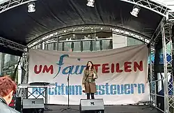 - ↑ Anna Klöpper: „Umfairteilen“-Demonstrationen / Netter Spaziergang, mehr nicht. In: die tageszeitung. 29. September 2012, abgerufen am 20. Mai 2014.