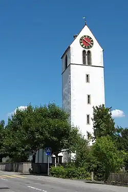 Die reformierte Kirche war einst dem heiligen Mauritius geweiht und wurde erstmals 1254 erwähnt. Das Mauerwerk des Kirchenschiffs ist im romanischen und gotischen Stil. Den Kirchturm ersetzte man nach 1488 durch einen Neubau, der Chor entstand 1521. Die in den Jahren 1963 bis 1971 erbaute Terrassensiedlung Mühlehalde galt während ihrer Entstehungszeit als viel beachtetes Projekt neuer Wohnformen.