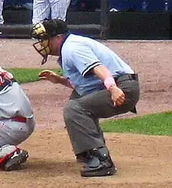 Im Baseball bezeichnet umpire einen Schiedsrichter eines Baseballspiels.[1] Im modernen Baseball wird ein Spiel von einer Gruppe von Schiedsrichtern geleitet, der umpiring crew.