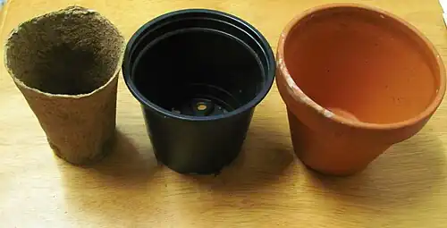 Topfpflanzen werden in Tontöpfen oder in Kunststofftöpfen kultiviert. Stecklinge oder Sämlinge werden häufig in Pikierkisten oder Saatkisten, Multitopfpaletten aus Kunststoff (PVC) oder in Anzuchtgefäßen aus Erde, Presstorf oder papierummanteltem Substrat aufgezogen.