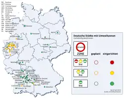 - ↑ Keine Umweltzonen in niedersächsischen Städten. In: nwzonline.de. Nordwest-Zeitung, 1. März 2007, abgerufen am 14. März 2019.
