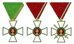 Das Großkreuz konnte von 1939 bis 1944 als Zeichen höchster Wertschätzung mit der Stephanskrone (Szent Korona, „Heilige Krone“) verliehen werden, die vorrangig an Staats- und Regierungschefs zur Verleihung kommt, getragen werden. Ebenso konnte die Klasse mit der Krone auch mit einer Collane verliehen werden. Alle Klassen können zudem für Kriegsverdienste auch mit Kriegsdekoration bzw. Kriegsband oder Kriegsdekoration bzw. Kriegsband und Schwertern verliehen werden.
