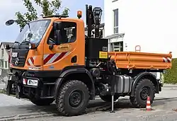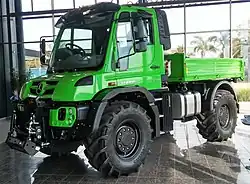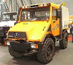 Der Unimog (Akronym für Universal-Motor-Gerät) ist eine Fahrzeugbaureihe von Mercedes-Benz, die von Daimler Truck hergestellt wird. Erfunden wurde er von Albert Friedrich. Konstruiert ist der Unimog als allradgetriebener Geräteträger und Klein-Lkw mit Portalachsen und wird vor allem in Land- und Forstwirtschaft, beim Militär und für kommunale Aufgaben in 160 Ländern eingesetzt. Einige Unimogmodelle sind klassische Dual-Use-Güter und werden auch für andere Aufgaben in unwegsamem Gelände, z. B. als Bohrfahrzeug oder bei der Katastrophenhilfe verwendet. Die Fahrzeuge sind als „Frontsitztraktor mit Allradantrieb“ klassifiziert.[2]