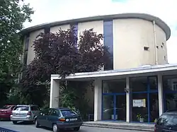 Als Architekt wurde Alfred Schild gewonnen, der sich 1956 durch die evangelische Erlöserkirche in Frankfurt-Oberrad einen Namen gemacht hatte. Für die Unitarier entwarf er 1956/1957 die Weihehalle, einen klaren modernen Rundbau auf ovalem Grundriss mit seitlichen Fensterschlitzen. Die Bestuhlung verzichtet auf Kirchenbänke und zielt auf den leicht erhöhten Altarbereich, den ein Oberlicht betont. Zur Mainstraße bildet die geschwungene Fassade mit einem Flugdach auf schlanken Stützen eine Schaufassade. Diese Form ist im Kirchenbau der Zeit geläufig, wird teils aber auch auf die Paulskirche hin gedeutet. Die Weihehalle wurde 1960 auf Grundlage der Entwürfe von Schild fertiggestellt und in den folgenden Jahren um ein Gemeindezentrum erweitert.