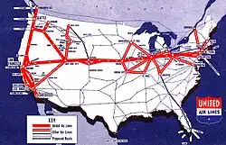 United ist damit die älteste noch aktive kommerzielle Fluggesellschaft der USA. Der Boeing-Gründer William Boeing gründete 1927 seine eigene Fluggesellschaft, Boeing Air Transport, und kaufte Varney Air Lines auf. Aus der 1928 gegründeten Boeing Airplane and Transport Corporation (Zusammenführung der Sparten Flugzeugherstellung und Fluggesellschaft) wurde 1929 mit dem Triebwerkhersteller Pratt & Whitney und anderen Flugzeugherstellern die United Aircraft and Transport Corporation (UATC). 1931 vereinigten sich Boeing Air Transport und die aufgekauften Fluggesellschaften innerhalb der UATC schließlich zu United Air Lines, unter deren Namen Passagier- und Postflüge angeboten wurden.[13] Walter Varney gründete 1934 Varney Speed Lines, aus der nach deren Verkauf schließlich im Jahr 1937 Continental Airlines entstand. United war die weltweit erste Airline, die schon ab 1930 (noch als Boeing Air Transport) Flugbegleiterinnen, damals noch ausgebildete Krankenschwestern, beschäftigte. Zuvor hatte es ausschließlich männliche Stewards gegeben.