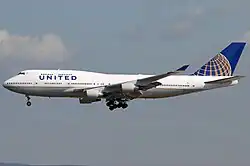 Mit zwei Flügen nach Frankfurt begann United im Mai 1990 mit dem Linienverkehr nach Europa.[21] Im Jahr 1990 kaufte United die Streckenrechte der in finanzielle Schwierigkeiten geratenen Pan Am nach London-Heathrow und lancierte den Flugverkehr im April 1991. Heathrow durfte bis 2007 nach dem sogenannten Bermuda-II-Abkommen auf Flugstrecken zwischen London und den USA aus protektionistischen Gründen neben zwei britischen Airlines (British Airways und Virgin Atlantic) lediglich von zwei US-Fluggesellschaften angeflogen werden: dies waren über Jahrzehnte Pan Am und TWA. Letztere veräußerte ihre Streckenrechte fast zeitgleich an American Airlines. Mit der Übernahme dieser exklusiven Streckenrechte etablierte United 1991 außerdem eine Basis für Flugbegleiter am Flughafen Heathrow, für die gegen den Widerstand der Gewerkschaft auch Nicht-US-Bürger als Bordpersonal rekrutiert wurden. Bis in die frühen 1990er Jahre bot United im Rahmen des Bermuda-II-Abkommens auch Flüge von Heathrow nach Berlin, Hamburg und München an. Im Zuge der internationalen Expansion wurden in den 1990er Jahren weitere Flugstrecken von der inzwischen insolventen Pan Am übernommen. Außerdem eröffnete United weitere Stationierungsorte für ihre Flugbegleiter außerhalb der USA mit vor Ort angeheuertem Kabinenpersonal, darunter in Paris (1992–2006), Santiago de Chile (1995–2002) und Taipeh (1993–2003).[22] In Singapur (1986–2001 sowie 2006–2008) und Bangkok unterhielt das Unternehmen Stationen für lokal rekrutierte Flugbegleiter, die exklusiv auf United-Flügen innerhalb Asiens arbeiteten, nach Gewerkschaftsvorgaben andere Uniformen als das sonstige United-Kabinenpersonal trugen und nicht mit letzterem zusammenarbeiteten. Die Flugbegleiterbasis in London (seit 1991) besteht bis heute. Im Juni 2020 beschloss die Geschäftsführung von United Airlines, die Kabinenpersonal-Stationen in Hongkong (1995 eröffnet), Tokio (ab 1996) und Frankfurt am Main (ab 1996) aufgrund der COVID-19-Pandemie zu schließen, die dort angestellten US-Amerikaner und Greencard-Besitzer in die USA zu versetzen und die restliche Belegschaft, fast 600 Mitarbeiter, fristlos zu entlassen.[23]