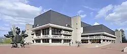 1619 gründete der Fürstbischof Johann Gottfried I. von Aschhausen die Bibliotheca Academica Godefridiana. Bis 1981 war sie im Renaissancegebäude der Alten Universität in der Domerschulstraße 16 untergebracht. Im 17./18. Jahrhundert wuchsen die Buchbestände durch Ankauf privater Büchersammlungen, z. B. des Augsburger und Eichstätter Domherrn Johann Georg von Werdenstein, des Würzburger Domvikars Paul Wenger und des Augsburger Bürgers Johann Baptist Welser. Der Dreißigjährige Krieg brachte große Verluste. Als Folge der Säkularisation kamen 1803 zahlreiche Handschriften und Inkunabeln in den Besitz der Bibliothek. Die wertvollste Handschrift, die die Bibliothek seither (für 1,35 Millionen DM mit Sondermitteln des Bayerischen Staatsministeriums Wissenschaft und Kunst) erworben hat, ist eine im Auftrag von Julius Echter angefertigte Abschrift der Bischofs-Chronik von Lorenz Fries.[1] Bis 1806 wuchs der Gesamtbestand auf 25.500 Bände. Private Sammlungen erhielt die Bibliothek etwa durch die Würzburger Sammler Friedrich Prym (vgl. Sosylos-Papyrus), Philipp Franz Horn (1781–1856), Oberpfleger am Juliusspital, und den Mediziner Johann Lukas Schönlein.[2] Durch Schenkung und Kauf – zum Beispiel der Fürstlich Leiningenschen Bibliothek Amorbach – wuchs der Gesamtbestand in den folgenden 100 Jahren auf 370.000 Bände. Bei der letzten Zählung vor dem Bombenangriff auf Würzburg am 16. März 1945 waren es 462.000 Bände. Der Brand vernichtete 80 % des Bestandes. Die unter dem Staatsoberbibliothekar und stellvertretendem Direktor der UB Georg Keller erfolgte Wiederherstellung der Bibliotheksräume in der Domerschulgasse[3] war 1957 abgeschlossen. 1981 wurde der Neubau (Architekt: Alexander Freiherr von Branca) auf dem Erweiterungsgelände Am Hubland bezogen. In dem Gebäude war bis Juni 2014 auch das Institut für Hochschulkunde untergebracht. Zu den bedeutenden Bibliothekaren der Würzburger Universitätsbibliothek zählen Peter von Richarz und Anton Ruland. 2019 feierte die Universitätsbibliothek ihr 400-jähriges Bestehen mit einem vielfältigen und umfangreichen Jubiläumsprogramm.[4] Einer der Höhepunkte im Jubiläumsjahr war die Ausstellung „Elfenbein & Ewigkeit“,[5] in der über 70 Spitzenstücke aus den Sondersammlungen in einer einzigartigen Zusammenstellung präsentiert wurden.