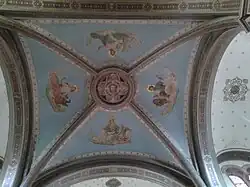 Auf beiden Seiten des Querschiffs finden sich jeweils zwei Seitenaltäre. Die beiden größeren, nächst dem Triumphbogen, sind links Maria und rechts Joseph gewidmet. Die gekrönte Maria wird flankiert von ihren Eltern Anna und Joachim. In einem Gemälde über dem Altar wird in der Verkündigung durch den Engel die Geburt Jesu angekündigt. Links neben dem Marienaltar steht ein kleinerer Pietàaltar, in dessen Altartisch Figurenbüsten mit Jesaia, David und Jeremias eingelassen sind. Über dem Pietàaltar findet sich ein eher seltenes Osterbild, das Christus als den Auferstandenen mit Siegesfahne, als Erlöser der Toten und den Sieg über den Tod zeigt.