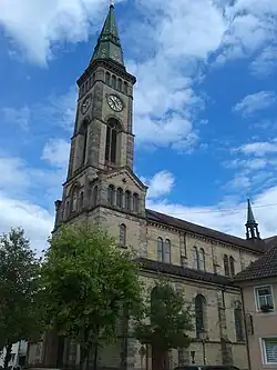 Die Bestrebungen von Metz und Weinbrenner hatten Erfolg und die politische Gemeinde entschied sich für einen Neubau. Die Gemeinde übernahm die Hauptlast der Kosten und bestimmte Weinbrenner zum Architekten. Weinbrenner, ein Schüler von Heinrich Hübsch, entwarf einen Kirchenbau im neuromanischen Gesamtstil, in dem sich auch byzantinische und Renaissance-Stilelemente finden. 1881 erfolgte die Grundsteinlegung, und bereits im Herbst 1882 wurde die Kirche gedeckt. Im Mai 1883 wurden die Glocken vom provisorischen Glockenstuhl in den neuen Turm gebracht. Die erste Messe wurde 1883 in der noch fensterlosen Kirche gefeiert. Die Fertigstellung und künstlerische Ausgestaltung zogen sich über mehr als 15 Jahre hin. Geweiht wurde das Gotteshaus 1889.[3]