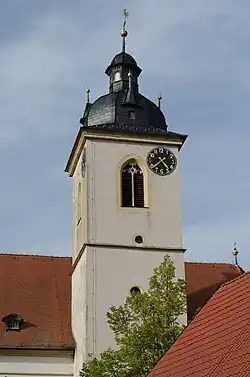Den Mittelpunkt des Dorfes bildet die katholische Pfarrkirche Mariae Himmelfahrt. Die Untergeschosse des Turmes stammen bereits aus der Zeit um 1400. Im Zuge der Gegenreformation erhöhte man 1582 den Turm und deckte ihn mit einer neuen Kuppel. Nachdem der Chor und das Langhaus baufällig geworden waren, wurden sie 1752 bis 1756 durch den Arnsteiner Baumeister Johann Müller neu erbaut. Älteste Ausstattungsstücke im Inneren sind ein Kruzifix und eine Madonna, die beide dem Einfluss Riemenschneiders zuzurechnen sind.