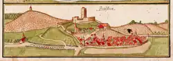 Amtshaus und Kasten gingen beim Angriff des französischen Heeres während des Pfälzischen Erbfolgekriegs 1693 mit der restlichen Stadt in Flammen auf. Beim Wiederaufbau hat man 1699 ein neues Amtshaus an der Hauptstraße unweit des Rathauses erbaut. Das abgebrannte Amtshaus am Berg wurde nur notdürftig wiederhergestellt und diente wohl nur noch Lagerzwecken.