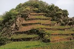 Ende des 19. Jahrhunderts hatte die Terrassierung von Talhängen der Untermosel – vereinzelt fast bis zur Bergkante – wohl ihre größte Ausdehnung erreicht. Die sukzessive Terrassierung hangaufwärts geschah auch besonders in den „Terroirs“, die seit frühester Zeit für begehrte und gut bezahlte Weine bekannt waren. Um größere Mengen produzieren zu können, wurden auch in den Seitentälern und weniger begünstigten Lagen Terrassen angelegt. Um 1880 werden für den Regierungsbezirk Koblenz rund 2500 Hektar zumeist steillagiger Weinbergsflächen genannt.[12]