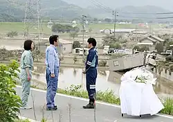 - ↑ Nearly 1,300 live in makeshift housing six months after Kyushu deluge. In: The Japan Times. 5. Januar 2018, abgerufen am 20. Juli 2018 (englisch).
