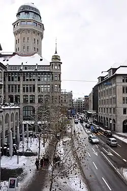 Warenhaus Brann, später Manor, an der Kreuzung mit der Bahnhofstrasse