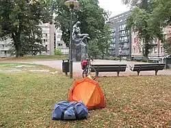 Urban Camping oder auch High Camping (engl., „städtisches Campen“) ist die Bezeichnung für einen modischen Trend, auf den Flachdächern von Häusern oder im öffentlichen Raum von Städten zu zelten. Bezeichnet wird diese Art zu zelten auch als stealth camping oder guerrilla camping, Begriffe, die den illegalen Aspekt von Urban Camping betonen.[1] Probleme mit Polizei und Justiz bei Urban Camping können sich ergeben, wenn Eigentümer der Flachdächer oder Kommunen von ihrem Hausrecht Gebrauch machen.