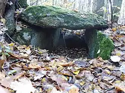 Die kleine Nord-Süd orientierte Kammer des allseits geschlossenen eingetieften Urdolmens liegt in einem Hügel. Die Kammergröße beträgt 1,6 × 0,8 m. Die westliche Seite besteht aus einem, die östliche aus zwei Tragsteinen. Im Süden wird die Kammer von zwei übereinanderliegenden Steinen verschlossen. Da der Schlussstein der Nordseite fehlt, ist eine genauere Bestimmung des Urdolmens nicht möglich. Es wird z. B. nicht deutlich, ob es sich um eine Blockkiste handelt. Der 1,60 × 1,40 m große Deckstein liegt auf. Gefunden wurde eine Anzahl bronzezeitlicher Gefäße, die von einer Nachbestattung stammen.