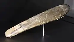 - Drei relativ vollständige Flöten, zwei vom Geißenklösterle und eine vom Hohle Fels, die zu den ältesten erhaltenen Musikinstrumenten weltweit gehören. Die Eiszeitflöten des Achtals sind im Museum – vermittelt durch Experimentelle Archäologie und Tonaufnahmen mit Nachbauten – in ihrer Verschiedenheit hörbar. Die Unterschiede zwischen den Instrumenten liegen unter anderem im Material begründet: eine Flöte ist aus Schwanenflügelknochen, die zweite aus Gänsegeierknochen, die dritte aus Mammutelfenbein. Insgesamt sind bis zu 24 Flöten oder Bruchstücke davon aus dieser Zeit bekannt (Stand 2016). Die unterschiedlichen Töne werden auf Knochenflöten über eine nicht absolut festgelegte Zahl von Löchern erzeugt. Angeblasen wurden die Flöten vermutlich über den scharfen Schaftrand oder über eine Kerbe. Die Tonfolge beruhte auf der Pentatonik.[12]