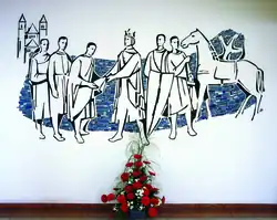 Beim Wiederaufbau nach dem Krieg erhielt der Rathausneubau eine Reminiszenz an das untergegangene Gemälde: Eine Wand des repräsentativen Treppenaufgangs zum zweiten Obergeschoss trägt ein Sgraffito des Künstlers Gerhard Pallasch (1923–1995) mit dem gleichen Thema: König Heinrich IV. übergibt die Urkunde von 1074 an die Bürger der Stadt.[57]