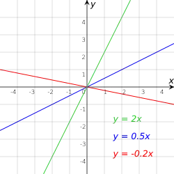 mit der Steigung . In dieser Form kann eine Ursprungsgerade allerdings nicht senkrecht zur x-Achse verlaufen.