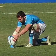 Im September 2000 entschied Uruguay das erste Freundschaftsspiel gegen Namibia für sich. Ab 2000 wurden die Südamerikameisterschaften jährlich ausgetragen, doch an den Kräfteverhältnissen auf dem Kontinent änderte sich vorerst nichts. Bis 2010 belegte Uruguay elfmal in Folge jeweils den zweiten Platz hinter Argentinien.[45] 2001 unterlagen die Teros bei der Panamerikameisterschaft den Argentiniern mit lediglich fünf Punkten Unterschied, hinzu kamen Niederlagen in Freundschaftsspielen zuhause gegen Italien und Spanien. Von Juli bis September 2002 bestritt Uruguay eine sechs Partien umfassende WM-Qualifikation. Diese begann zunächst denkbar schlecht mit drei Auswärtsniederlagen gegen Chile, Kanada und die Vereinigten Staaten. Doch dann gelang den Teros eine markante Leistungssteigerung mit Siegen in allen drei Heimspielen, wobei sie erstmals überhaupt die Kanadier und US-Amerikaner bezwingen konnten.[46] Uruguay qualifizierte sich dadurch für die Weltmeisterschaft 2003 in Australien. In der Vorrundengruppe C gab es neben drei hohen Niederlagen gegen Südafrika (6:72), Samoa (13:60) und dem späteren Weltmeister England (13:111) einen 24:12-Erfolg gegen Georgien.[47]