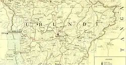 In der deutschen Kolonialzeit gehörte Urundi zuerst zum Militärbezirk Usumbura und ab 1906 wurde es die Residentur Urundi.[1] Von Mai 1911 bis Juni 1916 war Erich von Langenn-Steinkeller Kolonialresident in Urundi. Ab 1913 hatte die Residentur ihren Sitz in Gitega.[2] In der belgischen Kolonialzeit gehörte Urundi zu Ruanda-Urundi. Dessen Nordteil bildete nach Erlangung der Unabhängigkeit das Königreich Ruanda, während Urundi im Süden zum Königreich Burundi wurde.