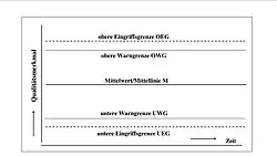 Auch setzt man dazu sinnvolle Warn- und Eingriffsgrenzen. Jeweils legt man zwei Grenzen fest, eine Ober- und eine Untergrenze, die den gleichen Abstand zu Mittellinie haben sollen.[1]