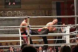 - Ushiro-Ura-Mawashi-Geri (halbkreisförmiger Rückwärtstritt)