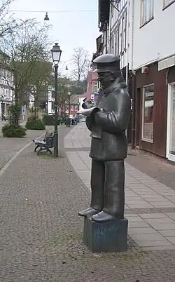 - „Redner Bode“. Sein Denkmal steht in der ehemaligen Fußgängerzone vor der Kreissparkasse und er ist auf dem 50-Pfennig-Schein des früheren Uslarer Notgelds von 1921 abgebildet.[78] Er war eine Art wandelndes Mitteilungsorgan für die Uslarer Bürger.