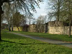 Als Folge des Schlossbrandes, weiterer Großfeuer 1625 und 1641 sowie infolge des Dreißigjährigen Krieges verlor Uslar stark geschädigt seine Bedeutung. Die Stadt wurde während des Krieges mehrfach von Tillys Truppen überfallen. 1654 hatte Uslar bereits eine Stadtmauer mit Wassergraben, wie der Merian-Stich (siehe Bild) belegt. Eine Stadtmauer ist bereits seit 1423 urkundlich belegt.