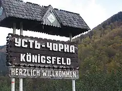 Da Königsfeld 1815 von Deutsch-Mokra ausgehend gegründet wurde, war lange Zeit hindurch der alte mittelbairische Dialekt aus dem Salzkammergut die Sprache der meisten Einwohner. Nach dem Zweiten Weltkrieg kam die Karpatenukraine und damit auch Königsfeld an die Sowjetunion. Viele der deutschsprachigen Bewohner waren massiven Repressionen ausgesetzt, manche wurden sogar nach Sibirien deportiert, und es war verboten, die Sprache des gerade besiegten Feindes zu sprechen. Dadurch wurde der Salzkammergütler-Dialekt der deutschsprachigen Bewohner im Laufe der Zeit weitgehend vom Ukrainischen verdrängt. Nach dem Zerfall der Sowjetunion sind viele Familien in die Bundesrepublik Deutschland und die Republik Österreich übersiedelt, so dass es heute nur noch ca. 15 deutschsprachige Familien in Ust-Tschorna gibt.