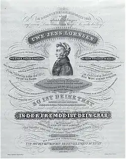 - ↑ a b c Silke von Bremen: Von der inneren Gefangenschaft eines Freiheitskämpfers. Uwe Jens Lornsens seelische Not. In: Nordfriesland. Nr. 169, März 2010, S. 22–27, hier S. 23 (PDF) ( des vom 24. September 2015 im Internet Archive) Info: Der Archivlink wurde automatisch eingesetzt und noch nicht geprüft. Bitte prüfe Original- und Archivlink gemäß Anleitung und entferne dann diesen Hinweis..