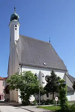 Auch Kaiser Maximilian I., der mit dem Schlossherrn des nahegelegenen Schlosses Wartenburg Wolfgang von Polheim befreundet war, förderte die Stadt und hielt sich mehrmals in ihr auf. Auf den Stadttürmen ließ er seine Wappen anbringen.