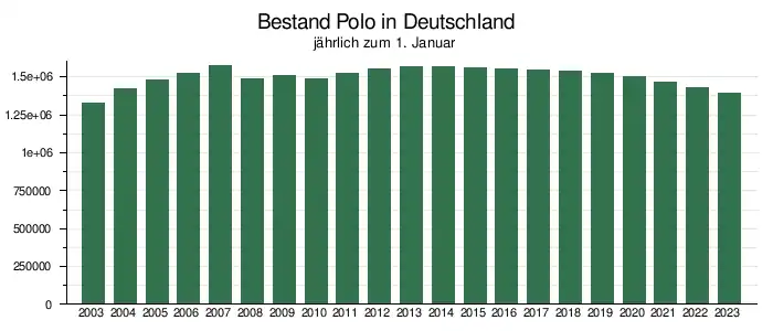 | Polo VI | 4053 mm | 1751 mm | 1461 mm | 2548 mm | 1105–1355 kg | länger als der Golf III (4020 mm), 7,4 cm mehr Radstand (Golf III: 2471–2474 mm) |